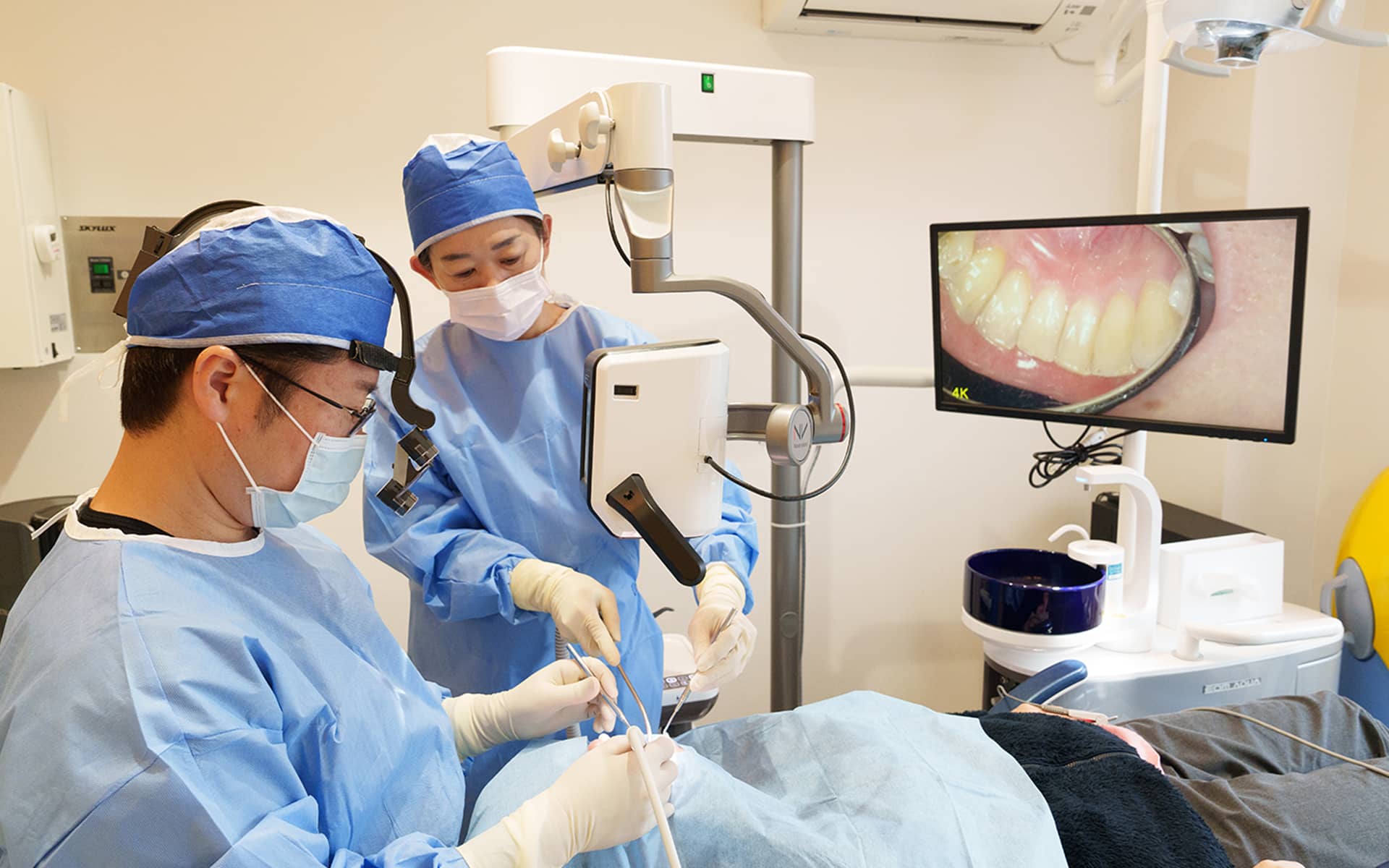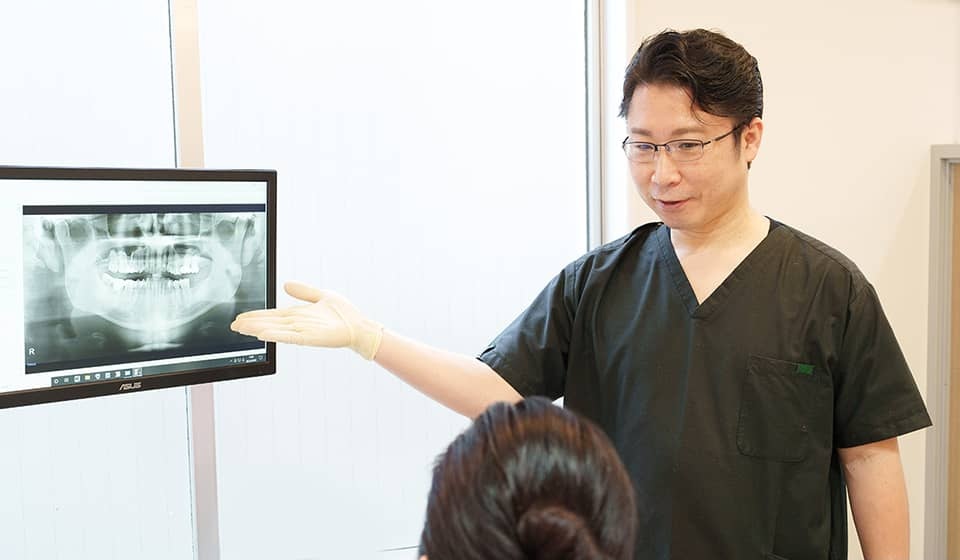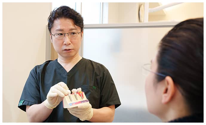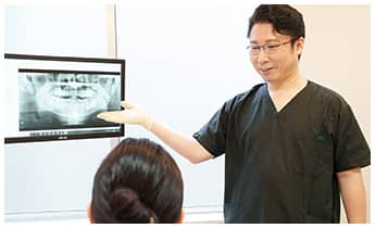 一人ひとりに合った治療を行うため、まずは精密検査を行います。お口全体の状態を確認するだけでなく、必要に応じて歯科用CTやマイクロスコープといった精度の高い設備を活用し、顎の骨の厚みや密度、形、歯ぐきの健康状態まで詳しく確認させていただきます。